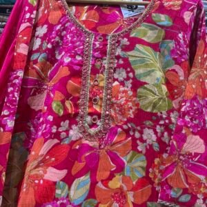Crafted with attention to detail, the suit offers a perfect balance of sophistication and practicality. The graceful 43-inch kurta length creates a sleek and elongated look, while the 39-inch bottom length ensures a well-proportioned and comfortable fit. Ideal for festive gatherings, casual outings, or office wear, this straight suit adds a refined charm to any occasion.