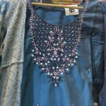 Be the first to review “Deep Peacock Blue Silk Suit Set featuring Pink & White Pearl Beadwork”