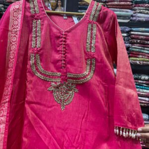 The straight-cut silhouette gives a modern yet traditional look, ensuring a flattering fit for all body types. The rich red color enhances your personality and makes you stand out gracefully. Pair it with matching accessories and heels to complete your ethnic look.