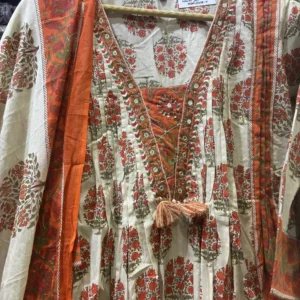 Be the first to review “Off-White Cotton Block Printed Kurta & Dupatta Set with Mirror Work”